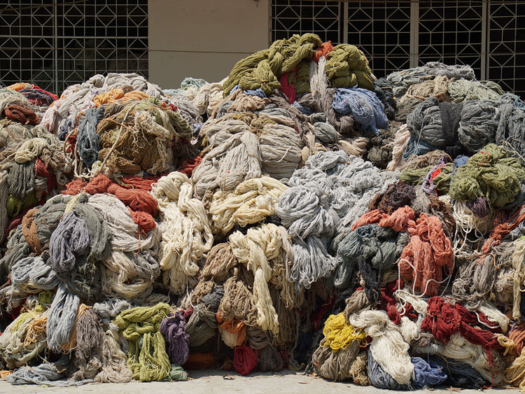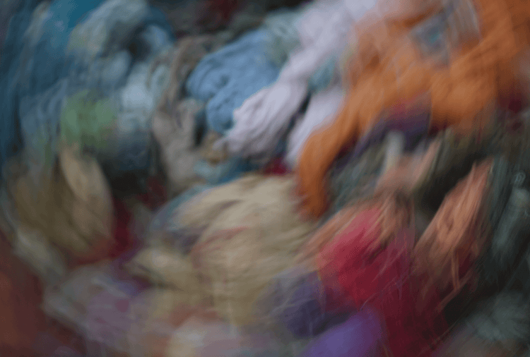 Trinchamos los hilos manualmente en partes pequeñas para posteriormente abrirlos mecánicamente y transformarlos nuevamente en fibra.