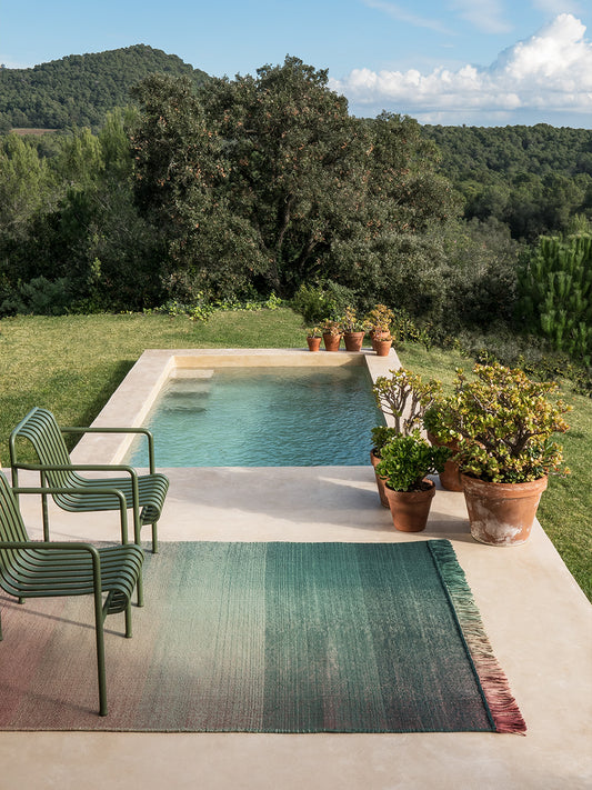 After several R&D efforts, we were able to improve our outdoor collections characteristics by upgrading our PET fibers’ dyes. From now on, our outdoor rugs and accesories withstand prolonged exposure to sunlight without losing their intensity, tone, or brilliance.