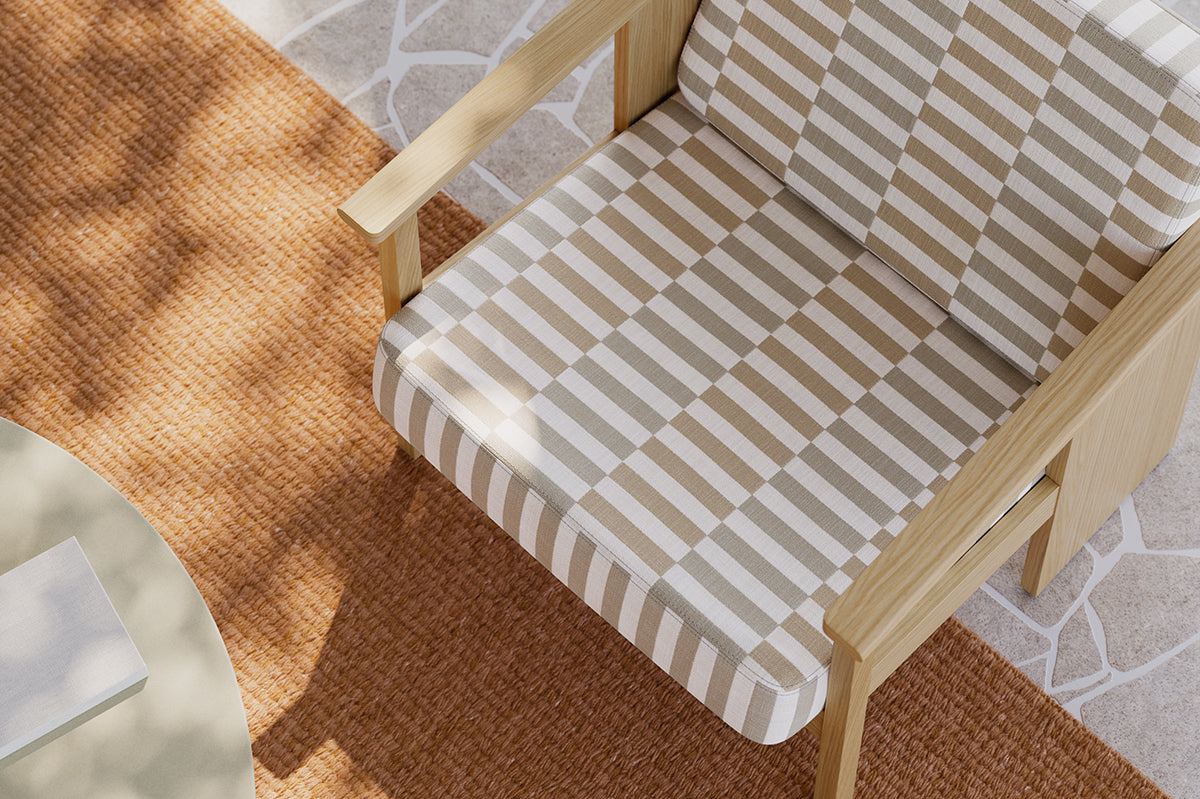 Reminiscent of piano keys, the pattern is slightly irregular, softly structured, and always in motion. Stripes, a recurring language in Nani’s work, form a quiet rhythm — not quite perfect, not quite predictable, but inherently harmonious. Woven for outdoor use, Join brings understated texture to both natural and architectural spaces, finding beauty in the balance of repetition and variation.