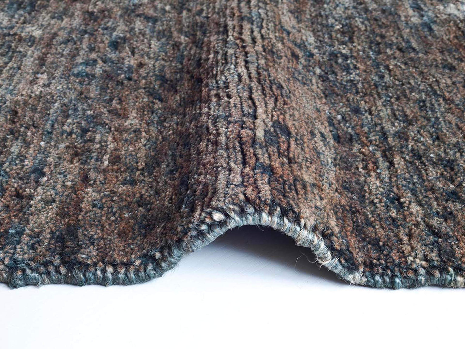 Fresh and rustic, the handmade jute fiber Noche rug appeals to our senses, bringing us back to the basics of life. The jute and its dyeing process give the colors unique shades such as this blue-green model.