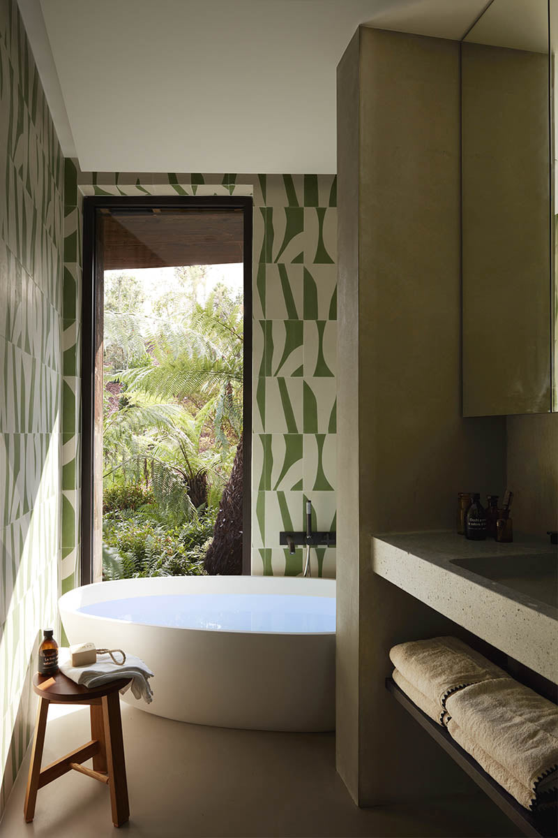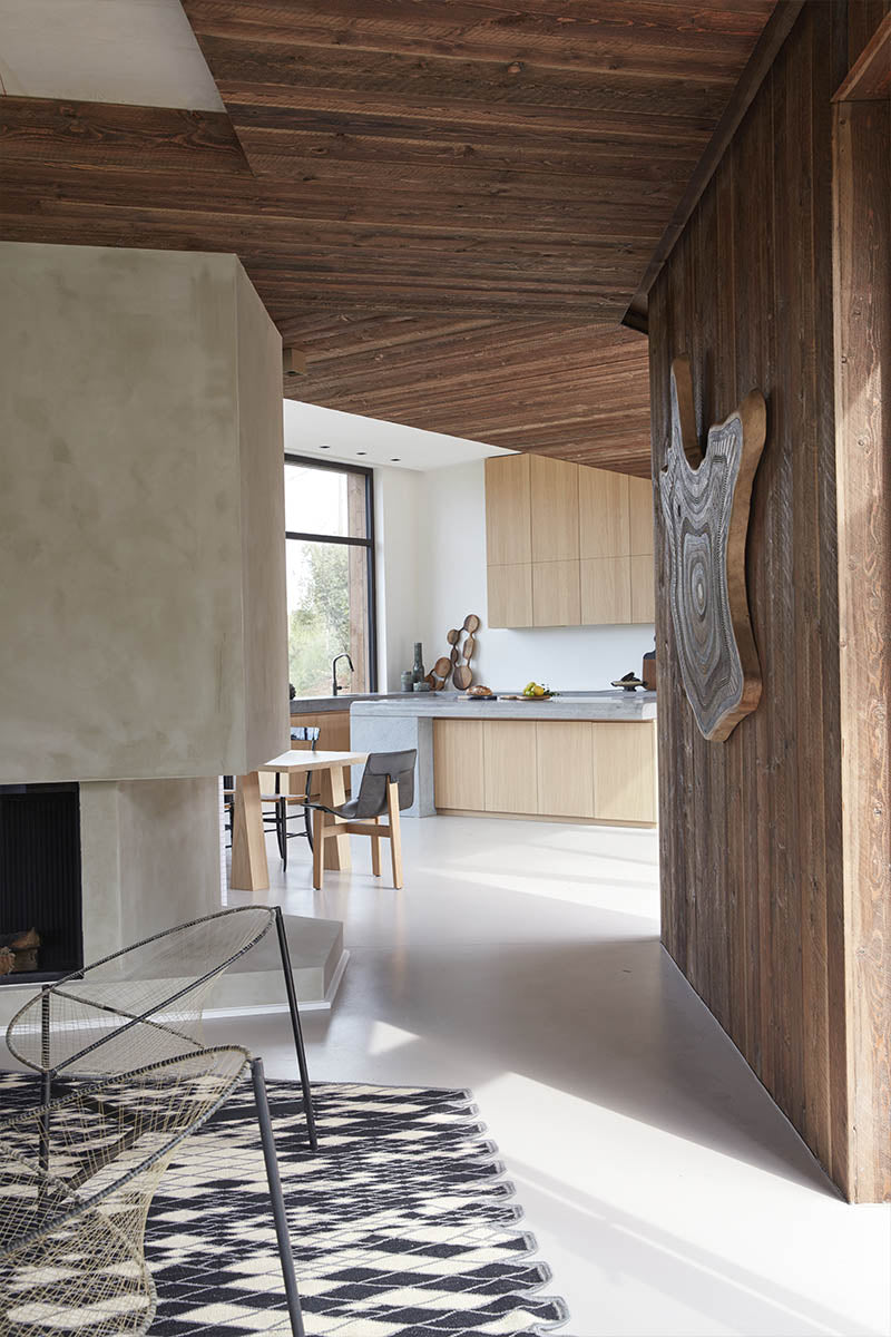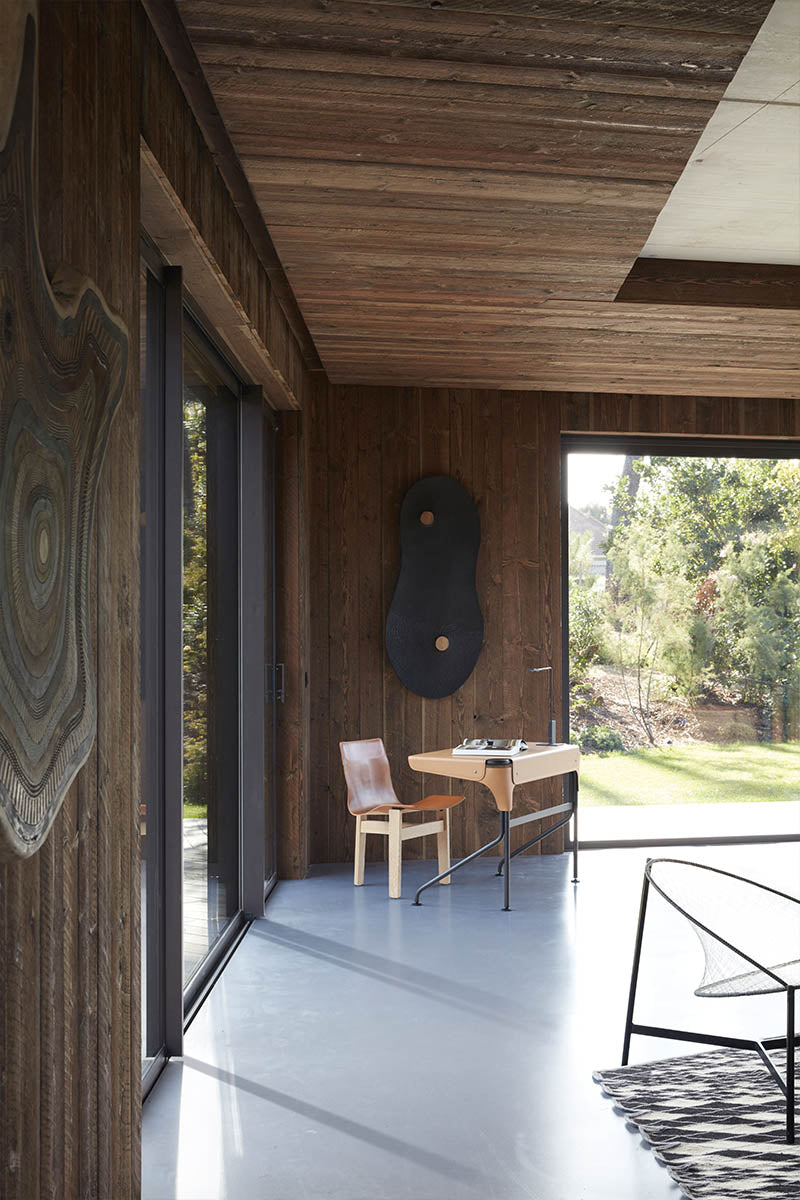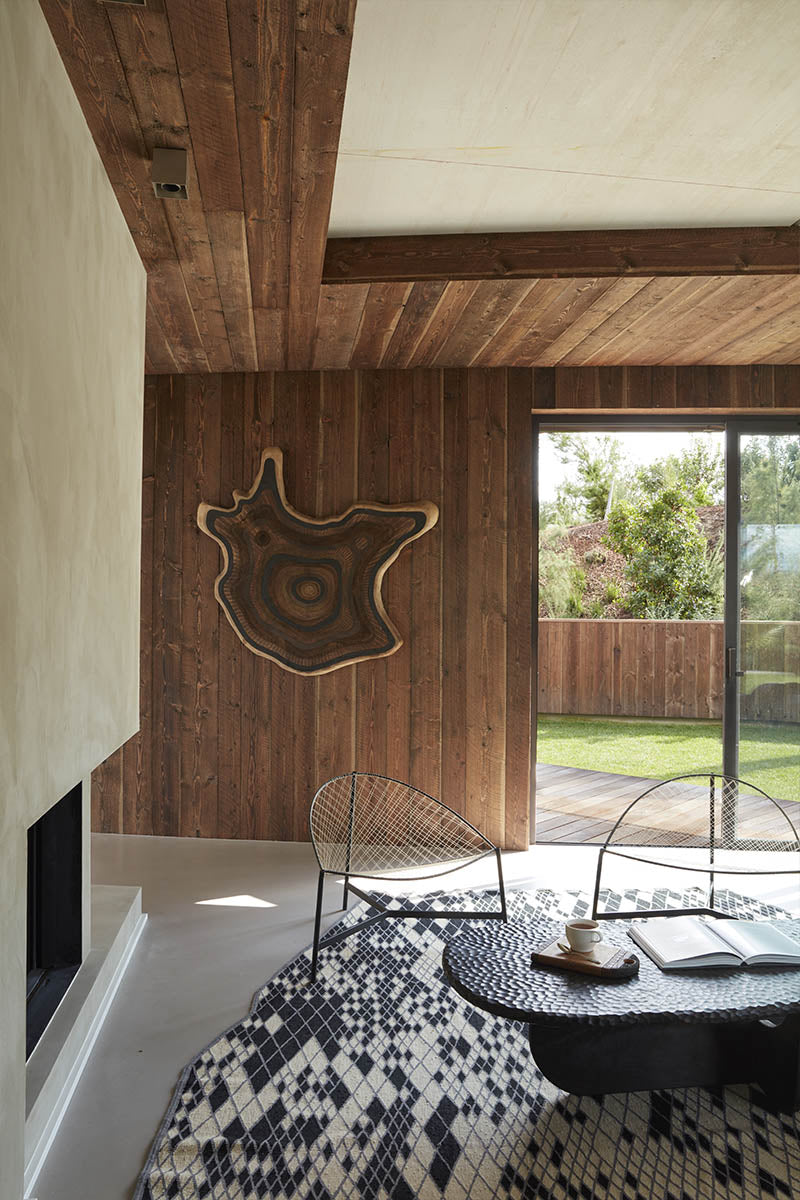 nanimarquina is present in the living room with our iconic Losanges in black and white, designed by Ronan & Erwan Bouroullec. This piece gives the space a harmonious feel and adds a touch of sophistication to the open space overlooking nature.