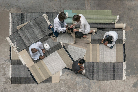 La lana, el fieltro de lana , el algodón en diferentes grosores, las distintas densidades y cambios de estampado, y el uso de flecos, dieron como resultado un diseño único. Nani lo había logrado: había conseguido plasmar todos los atributos de la artesanía en una alfombra. Una verdadera celebración de la artesanía, reflejando la belleza de la imperfección.