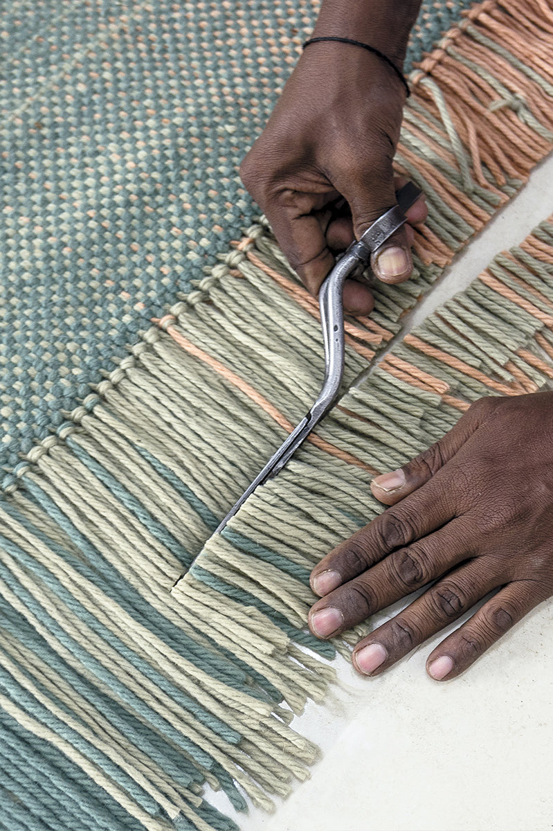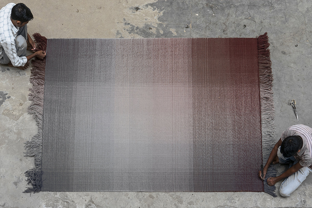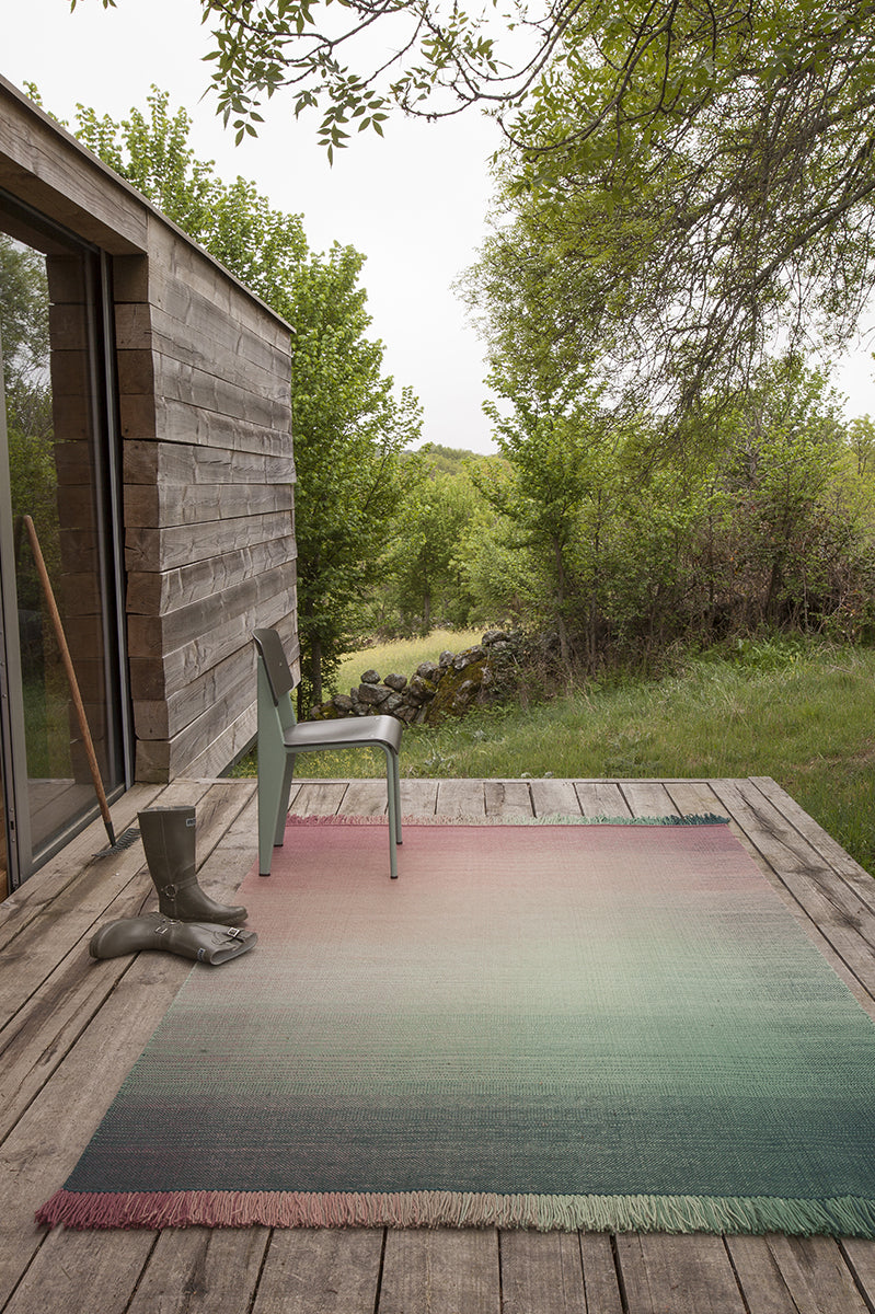 Una sensación de placer estática y visual, como confirma su diseñadora “Shade es una alfombra de tejido plano hecha a mano que genera una increíble y redonda difusión del color. La superficie desprende una sensación de tranquilidad y bienestar que se equilibra con la penetrante vibración de los colores”.