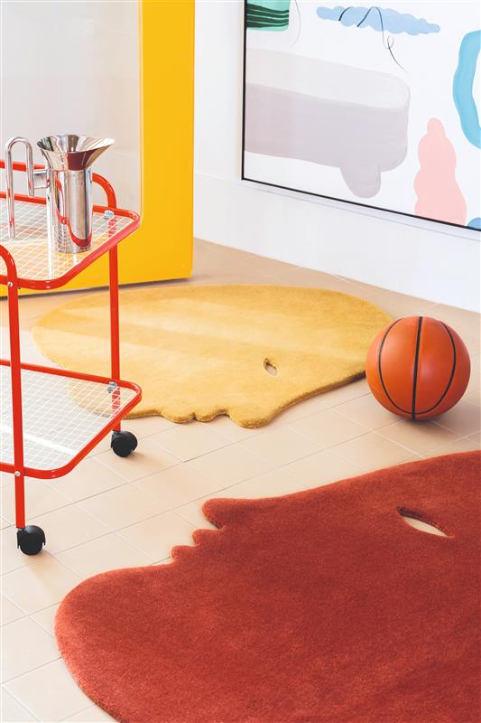 También hay un aspecto muy bonito en esta colección: la alfombra tiene la silueta de una persona, lo que crea una especie de sombra en el espacio. Esto le da una dimensión más surrealista y permite que, con un poco de imaginación, la alfombra se adapte y genere un momento mágico en el entorno en el que se utilice.