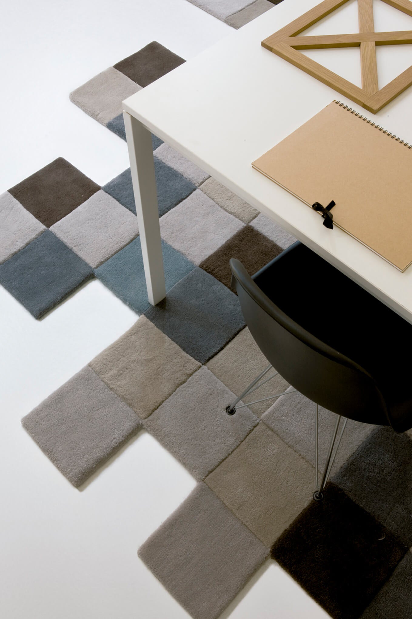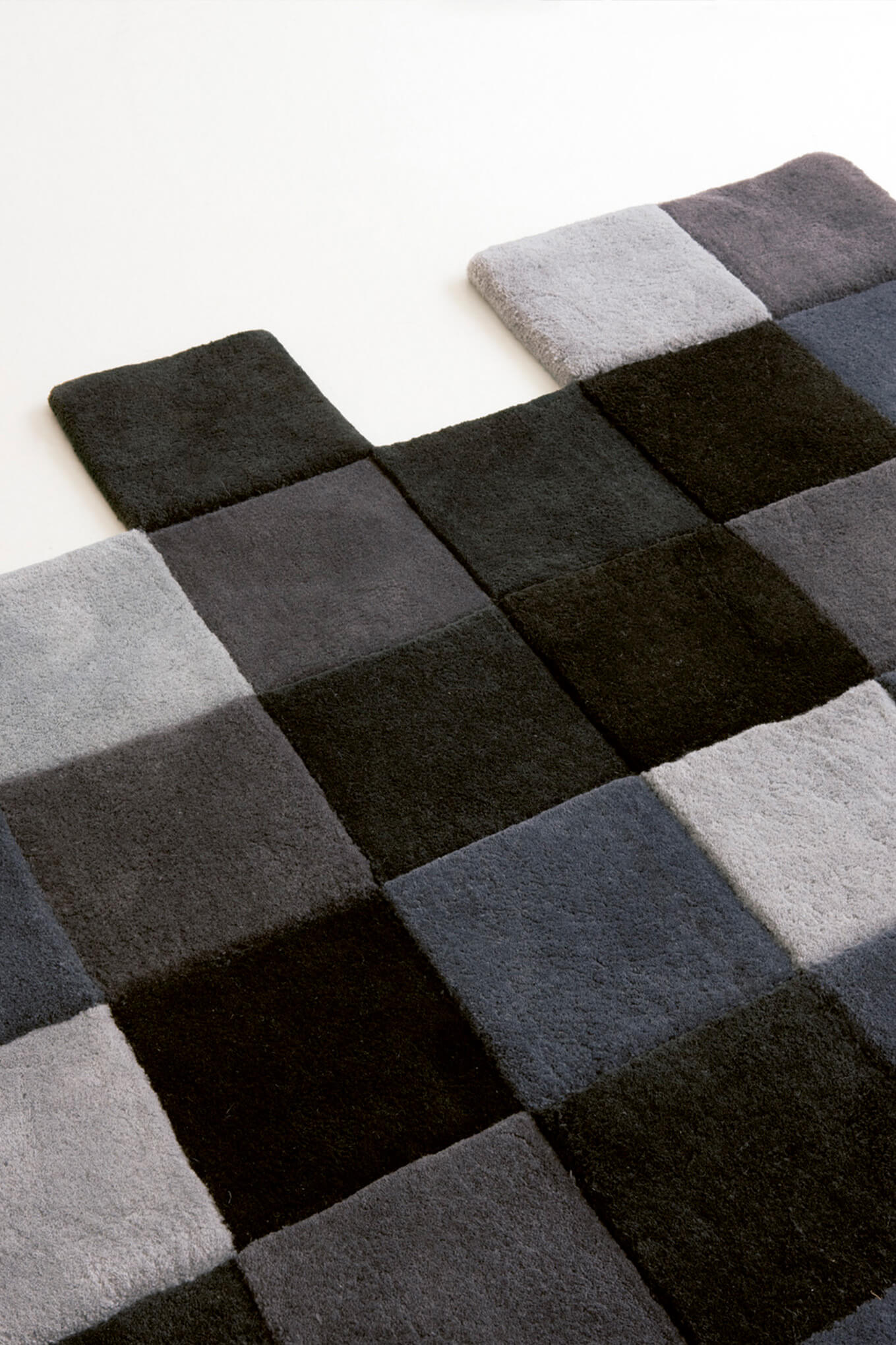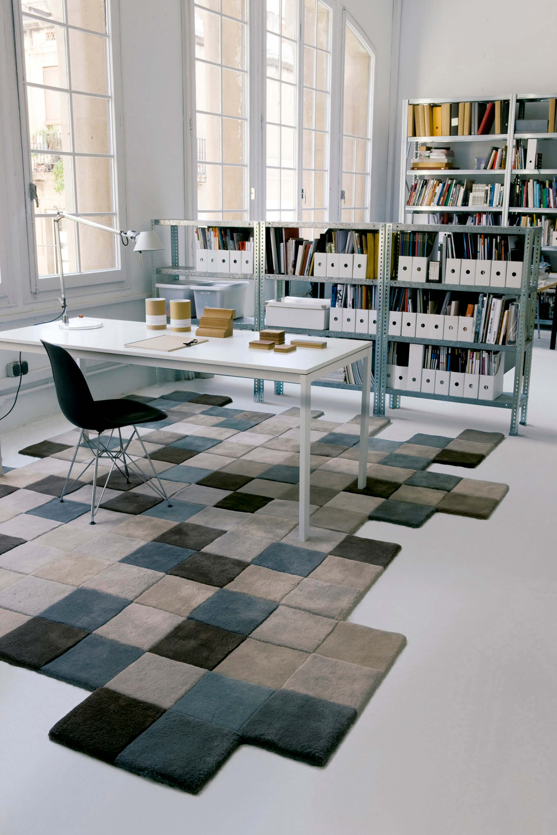 Por otro lado, su extraordinario formato comporta múltiples vértices que parecen finales de un puzzle inacabado. Este juego de volúmenes y niveles permite alfombras a medida, customizadas.
