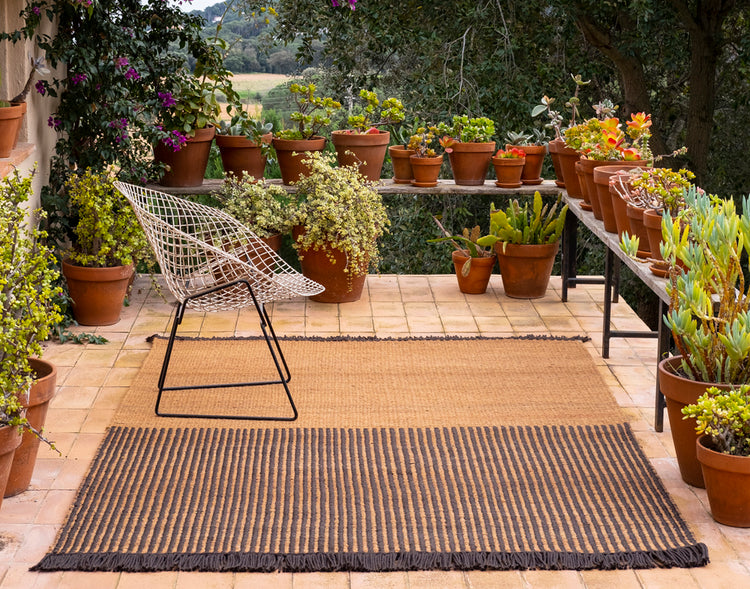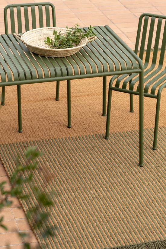 Garden es una alfombra exterior confeccionada con PET reciclado y fibra de coco, un material natural y resistente que redefine la funcionalidad y el estilo en espacios al aire libre.