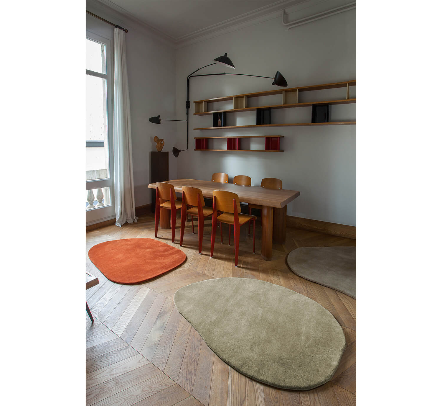 De tamaño pequeño y forma orgánica, las alfombras Stone wool están inspiradas en las piedras que encontramos en los ríos, en la naturaleza.