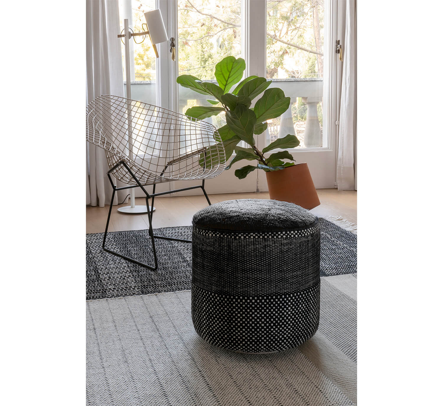 El puff tiene el cuerpo hecho a base de la alfombra Tres y su asiento está confeccionado con la alfombra Persian Colors. Un puff que no deja indiferente a los sentidos.