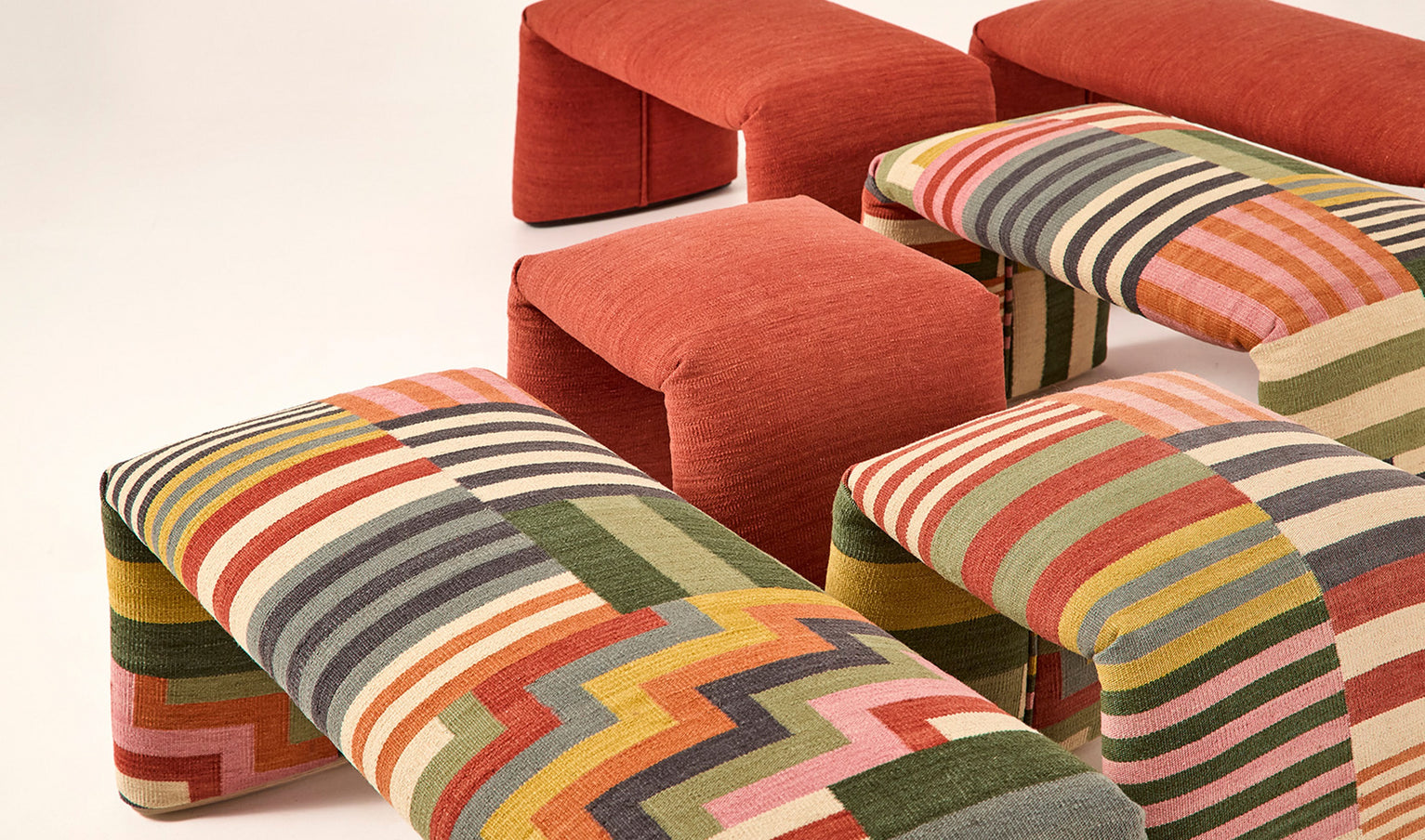 Nani Marquina en colaboración con el diseñador Manel Molina, presentan una nueva banqueta inspirada en la esencia de la alfombra. Este diseño eleva la funcionalidad de la alfombra más allá del suelo, convirtiéndose en un elemento de mobiliario práctico y versátil. Tanto el diseño de la tapicería como la forma de la propia banqueta han sido concebidos como un binomio inseparable, donde funcionalidad y expresividad van de la mano en todo momento.
